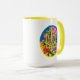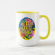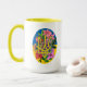 ukrainischer Präsident und ukrainische Flagge mit Tasse