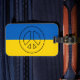 Gepäckmarke mit der Flagge der Ukraine und einem Friedenssymbol
