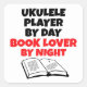 Dieser Aufkleber mit dem Zitat "Ukulele Player by Day Book Lover by Night" ist perfekt für jeden Ukulele Player, der Lieben beim Lesen.
