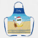 This whimsical Santa Claus is celebrating Christmas, Hawaiian style. He’s at the beach, with his Ukulele. The message at the bottom of the apron reads, "MELE KALIKIMAKA” (MERRY CHRISTMAS).