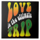 Ein lustiges, groovy Sprichwort, das in den 60er Jahren bei friedliebenden Hippies beliebt war: Liebe ist die ultimative Reise in lebendigen Farben und psychedelischem Schriftart und Retro-Wortart. Ein tolles Geschenk auch!