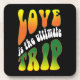 Ein lustiges, groovy Sprichwort, das in den 60er Jahren bei friedliebenden Hippies beliebt war: Liebe ist die ultimative Reise in lebendigen Farben und psychedelischem Schriftart und Retro-Wortart. Ein tolles Geschenk auch!