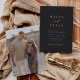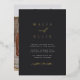 Eine schöne, minimalistische typografische Hochzeitseinladung mit Ihren Namen in der Goldfolienprägung, verbunden mit der modernen Kalligraphie-Schriftzeichen-Akzent Schrift. Personalisieren Sie Ihre Hochzeitsdetails unten und fügen Sie ein volles, gradorientiertes Foto mit Blutung hinzu. Unsere Ash-Farbtöne geben mit weißer und goldener Folie eine klassische Note auf einem weichen, schwarzen Hintergrund.