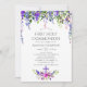 Ultra-Violet Rose und Pionieren blumengeschmückte erste heilige Kommunion Einladungen mit Akzenten von lila, rosa und blau.