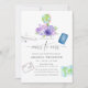 Aquarellfarbene Blumenreise Bridal Dusche Einladungen mit Farbe des Jahres 2018 ultra violett mit Schattierungen von lila und schluckgrünen Akzenten. Zu den Blume zählen Hydrangea, Lavendel, Pfannenbäume und Rose.