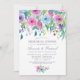 Handgemalte Aquarell-Rose Probe-Dinner Einladung mit Farbe des Jahres 2018 ultra violett mit Blautönen und Rosa mit schlängelgrünen Schnörkeln.