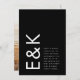This fantastic clean, tidy well designed modern minimum yet very playful bold monogram & text platzierung in Black and White for minimalistic style, however is customizable to other colors and is part of a unique suite and collection by Phrosne Ras Design. This would be great for those planning a fun black & white event, with this wedding einladung being bold and was inspirred by fun-loving people who love a good party and don't mind straying from tradition.