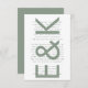 Ultramoderne, muffige Big Monogram Sage Green Wedd Begleitkarte