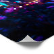 A nocturnal cyberpunk scene where blooms glow with electric blues and magentas against blurred neon city signs—a moody, atmospheric art print.
