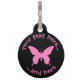 Rosa Ulysses Schmetterling. Vector Icon mit anpassbarer Farbe. Benutzerdefinierte Hintergrundfarbe. Zwei benutzerdefinierte Textfelder im Kreis. Benutzerdefinierter Text auf der Rückseite