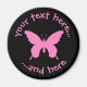 Rosa Ulysses Schmetterling. Vector Icon mit anpassbarer Farbe. Benutzerdefinierte Hintergrundfarbe. Zwei benutzerdefinierte Textfelder im Kreis.