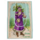 Um 1910 Weihnachtsmann in lila Gewand Mittlere Geschenktüte