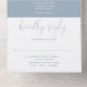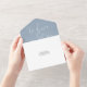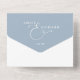 Diese minimalistische Hochzeitseinladung mit eleganter Typografie auf einem staubblauen Hintergrund. Die Einladung enthält eine perforierte RSVP-Karte, die individuell adressiert oder links werden kann, damit Sie die Adressdaten Ihres Gastes handschreiben können. Entwickelt von Thisisnotme©
