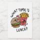 Um wie viel Uhr ist das Mittagessen? Hübscher Hamburger und Pommes frites in der Liebe. Ein perfektes Spiel sowohl für Kinder als auch für Erwachsene.