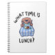 Um wie viel Uhr ist das Mittagessen? Ein toller, lustiger Hund am Tisch bereit zum Mittagessen. Ein perfektes Spiel sowohl für Kinder als auch für Erwachsene.