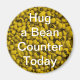 Button für Buchhalter sagt: "Hug einen Bean Counter Today" in weißer Schrift auf einem Hintergrund gelber Bohnen. Wer sagt, dass Buchhalter kein Spaß haben? Niedliches Geschenk für Ihren Lieblings-Zahlenschleifer.