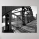Ein Schwarz-Weiß-Foto von Umaya-Bashi, einer Dreibogenbrücke, die 1929 in Tokio, Japan, über den Sumida River gebaut wurde.