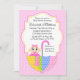 © 2012 Sozialite Designs. Feiern Sie mit der Mutter-zu-sein / Eltern-zu-sein mit dieser skurrilen Baby-Dusche Einladung. Unser Design hat ein skurriles Baby in einem Regenschirm und eine drapierte Decke. Eine perfekte Babydusche für ein kleines Mädchen.