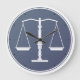 Stilvolle Uhr mit Waage des Justizsymbols.