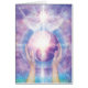 Hände, die Yin Yang Symbol mit Flügeln und Licht oben in den lila und blauen Pastellfarben durch Daniel B. Holeman umfassen.