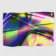 Abstrakte konvexe, verdrillte blaue und gelbe Spirale mit überlappenden und verblassenden Designs im Gradientenstil und dunklen Tönen, die Schatten und helle Töne ähneln, die der Reflektion der Helligkeit in etwas wie einem superaufgeblasenen bunten Ballon ähneln.