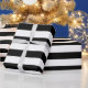 Das ist ein elegantes Verpackungspapier, das für jeden Anlass verwendet werden kann. Die Streifen sind schwarz-weiß.