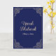 Umrah Mubarak Navy Blue Islamic Gift Grußkarte. Es handelt sich um ein elegantes und luxuriöses Kartendesign mit einem Filigree aus Goldblättern in der Ecke der Grenze. Es gibt einen klassischen Script-Schriftart. Sie können dieses Produkt anpassen, indem Sie den Text ändern, der im Inneren geschrieben ist, und auch die Namen der Familienmitglieder, die diese religiöse Reise gemacht haben. Von ihrer Linie für Design erschaffen.