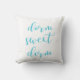 Dieses stilvolle, helle Kissen sagt "süßen Schlafsaal des Schlafsaals" in der modernen Typografie im Türkis und im Weiß. Das Kissen ist umschaltbar, also können Sie wählen, welches Match Ihr Dekor das Beste!