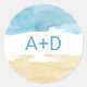 Der Sand und die Umschlag Aufkleber der Hochzeitsfeiern sind in Aquarelltönen gehalten und eignen sich ideal für eine Hochzeit am Strand. Das abstrakte Design zeichnet sich durch eine gelbe und blaue Aquarellstruktur aus, die so gestaltet ist, dass die Meeresvibes am Meer sichtbar werden. Personalisieren Sie das Etikett mit den Initialen der Braut und des Bräutigams.