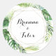 Diese geometrischen Umschlag Aufkleber der Hochzeit in Urlaubsort sind perfekt für eine tropische Hochzeit. Das Design besteht aus handbemalten Aquarell-grünen Palmen und Bananen-Blätter, die in hübschen Bouquets angeordnet sind und einen goldenen geometrischen Rahmen schmücken. Personalisieren Sie die Etiketten mit den Namen der Braut und Bräutigam.