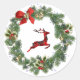 Einfaches Weihnachtskranz in Aquarellfarbe mit karierten oder kartanischen Rentieren, die drinnen springen. Stilvoller Umschlag Aufkleber für all Ihre Urlaubsartikel. Es gibt 20 Aufkleber pro Blatt auf diesem Produkt.