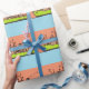 Geschenkpapier zum Thema Nautic mit kleinen Motorbooten, die das Geschenkpapier schmücken.