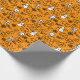 Papier mit einem modernen minimalistischen Design zu Halloween, ein Muster von Silhouetten von Schädeln, Geistern, Spinnweben, eine Silhouette einer Katze, Kürbis auf einem orangefarbenen Hintergrund.