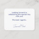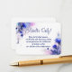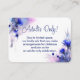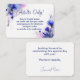 Einführung der Wedding Information Card aus der Cornflower Reverie Collection, die mit Eleganz und Praxisnähe gestaltet wurde. Diese 3,5" x 2,5" Kabinenkarte bietet eine atemberaubende Kulisse mit zarten Maisblumen, die eine ruhige und schöne Ästhetik schafft. Auf der Vorderseite wird die Beschriftung "Nur Erwachsene" in einem eleganten Schriftart hervorgehoben, wodurch Klarheit für alle Gäste geschaffen wird. Unten finden Sie genügend Platz für jeden zusätzlichen Text, der Ihnen zusätzliche Details oder Anleitungen für die Veranstaltung bietet. Auf der Rückseite der Karte befindet sich ein sauberer weißer Hintergrund mit dunkelblauem Text, der zusätzlichen Platz für weitere Informationen oder eine herzliche Nachricht des Paares bietet. Diese Karte verbindet ästhetische Anziehungskraft mit Funktionalität und passt sich perfekt in die ruhige und elegante Atmosphäre der Cornflower Reverie Collection ein. Diese horizontale Einschließkarte sorgt dafür, dass Ihre Gäste alle nötigen Informationen haben, während Sie eine kohärente und stilvolle Präsentation für Ihr Hochzeitsgeschenk erhalten.