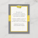 Diese romantische und schicke, gelbe, graue und weiße Blumen-Hochzeitsempfangskarte hat ein bedrucktes gelbes Band mit einem PRINTIERTEN, gepolsterten Diamantschmuck und Imitaten gelben Glitzer Brooch darauf, das der unten abgebildeten Hochzeitseinladung entspricht. Der gesamte Text ist anpassbar. Sie können diese Karte als Wegweiser oder als Unterkunftskarte, als Geschenkregister, Gutscheinkarte, Hochzeitswebkarte oder Informationskarte benutzen, ****BITTE BEACHTEN SIE, dass auf dieser Karte keine erhöhten Elemente vorhanden sind. Alles ist flach gedruckt. ***BITTE BEACHTEN SIE, dass, wenn Sie den Schriftart oder die Größe des Schriftartes ändern, dies die Druckweise Ihrer Karte verändern kann. Es druckt, wie Sie es auf Ihrem Monitor sehen. Wenn Sie Alignment-Probleme oder Größenprobleme haben, wenden Sie sich bitte an mich, um Hilfe zu erhalten. Ich werde Ihre Karte nicht sehen, wenn Sie sie bestellen, und Zazzle wird nichts bearbeiten (Tippfehler, Ausrichtung, etc.). Wenn Sie Hilfe benötigen oder andere passende Artikel wünschen, senden Sie Ihre Anfrage bitte an niteowlstudio@gmail.com.