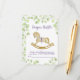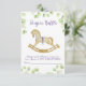 Umschließungskarte Windelrudel für Babydusche, mit einer wunderschönen Aquarellabbilderung eines zauberhaften Rockpferdes, umgeben von zarten Ästen mit hellgrünen Blätter.