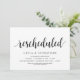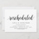 Ändern Sie die Datumskarte. Dies ist die Hochzeitsfeier Einladung Rescheduled (verschoben / verschoben) Karte (Neuer Plan), in der modernen minimalen einfachen Design-Thema, Schwarz Schriftart.