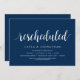 Ändern Sie die Datumskarte. Dies ist die Hochzeitsfeier Einladung Rescheduled (verschoben / verschoben) Karte (Neuer Plan), in der modernen minimalen einfachen Design-Thema, Navy Blue Schriftart.