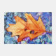 Hübsche Wasserfarbe eines braunen Herbstblattes vor blauem Wasser.
