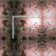 Ein hübsch rosa, weiße, gelbe, grüne und schwarze Kunstdesign, das sich auf das Wasser und die herbstfallenden Blätter reflektiert.