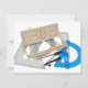 Holztür mit verschiedenen Reglern und Winkelwerkzeugen zum zeichn von Umbauplänen