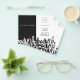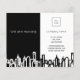 Ein eleganter und minimalistischer Flyer für eine Stadt-Business, Unternehmen, echte Anwesen-Agent, Hausmeister, Hausmeister. Schwarz-Weiß mit einer City-Skyline. Personalisieren und hinzufügen Sie Ihr Unternehmen, Firmenlogo, Name, Adresse und Kontaktinformationen auf der Vorderseite. Zurück: schwarzer Hintergrund.