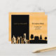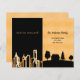 Eine elegante und minimalistische, sich bewegende Ankündigungskarte vom Stadtleben zum ländlichen Leben. Schwarz und Imitate Gold mit einer City Skyline und einer Country Zuhause. Personalisieren und fügen Sie Ihre neue Adresse und Nachricht zu Ihrer Familie und Ihren Freunden.