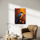 Bringen Sie die Schönheit der Natur in Ihren Raum mit Un Solo Pájaro, einem atemberaubenden Vogel- und Blumenkunstdruck, der mit den reichen Herbsttönen platzt. Dieses Kunstwerk vereint den Charme der Volkskunst mit moderner Eleganz und bietet einen blauen und goldenen Vogel auf einem zarten Ast inmitten lebendiger orangefarbener und roter Blume. Dieses Stück ist perfekt für Vogelliebhaber, Naturliebhaber und diejenigen, die eine kühne, farbenfrohe Dekoration schätzen, und verleiht Wohnzimmern, Schlafzimmern, Küchen und Büros Wärme und Charakter.