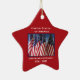 250. Jahrestag 1776 bis 2026, USA, Weihnachtsbaumschmuck. Unabhängigkeitserklärung von hinten Wir halten diese Wahrheiten für selbstverständlich, dass alle Menschen gleich geschaffen werden, dass sie von ihrem Schöpfer mit bestimmten unveräußerlichen Rechten ausgestattet sind, darunter das Leben, die Freiheit und das Streben nach Glück. Ein großer Meilenstein für die USA! Foto amerikanischer Fahnen, die im Wind schwingen, und patriotischer Text machen dies zu einem wunderbaren Sake - ein einmaliges Ereignis im Leben! Große Weihnachts Premium Sternform Ornament. Alle Rechte vorbehalten © 2025 Alan & Marcia Socolik.