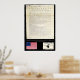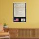 Poster mit der ersten gedruckten Ausgabe der Unabhängigkeitserklärung. Auch eine Grafik der original amerikanischen Flagge und der Culpeper Minutemen Fahne.
