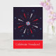 Feiern Sie Freiheit ist das Gefühl an diesem Unabhängigkeitstag, 4. der Juli-Grußkarte. Sie kennzeichnet ein grafisches illustriertes Feuerwerk, das aus geometrischen Formen in rotem weißem und im Blau auf einem dunkelblauen Hintergrund besteht. Blaue und weiße Polkapunkte trennen das Blau vom roten Bar entlang Unterseite.