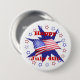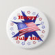 Button mit meinem originellen Design der amerikanischen Flagge umgeben von roten, weißen und blauen Sternen. Anpassbarer Text sagt "Happy 4. Juli".