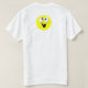 Der Text ist ein Bild, weiß, in schwarz umrissen, so wird es gut auf jeder Farbe. "Ich bin nicht unbeholfen. Ich erlebe nur periodische Verschiebungen in meinen Gravitationsstabilisatoren."... Das ist es, was ich einem Kollegen erzählte, nachdem ich das zweite Mal in wenigen Minuten über meinen Schatten stolperte. Das Gesicht auf der Rückseite ist eine Collage von Augen, ein Punktbild und ein Text "u" für das Lächeln. Dies kann gelöscht werden, wenn Sie das Shirt so wollen (was das Shirt auch etwas kostengünstiger macht).