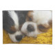 Dieses ist ein Standardgrößenkissenbezug, der eine ursprüngliche Fotografie zwei entzückenden unbekümmerten Königs Charles Spaniels kennzeichnet, ein tricolor und ein blenheim und zusammen schläft auf ihrer Lieblingsdecke.